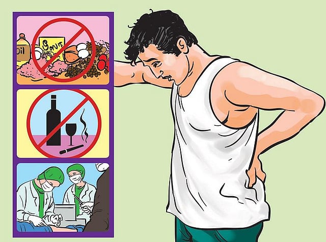 அடிக்கடி அசைவ உணவு வகைகளைச் சாப்பிடுவதைத் தவிர்க்க வேண்டும். காரம் அதிகமான உணவு ஆகாது. மசாலா நிறைந்த, கொழுப்பு மிகுந்த உணவு வகைகளைக் குறைத்துக்கொள்ள வேண்டும். நார்ச்சத்துள்ள உணவு வகைகளை அதிகப்படுத்த வேண்டும்.