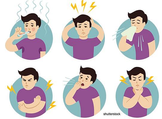 காய்ச்சல் 100.4 டிகிரி ஃபாரன்ஹீட் வரை போகலாம். சிலருக்குக் காது வலி வரலாம். அபூர்வமாகச் சிலருக்கு ரத்த வாந்தி, மூக்கில் ரத்தம் ஒழுகுதல், வெளிச்சத்தைப் பார்க்கக் கடும் கூச்சம் போன்றவை இருக்கலாம். இப்படிப்பட்ட பிரச்சினைகளுடன் இருப்பவர்கள் உடனடியாக மருத்துவமனையில் சிகிச்சை பெற வேண்டியது அவசியம்.
