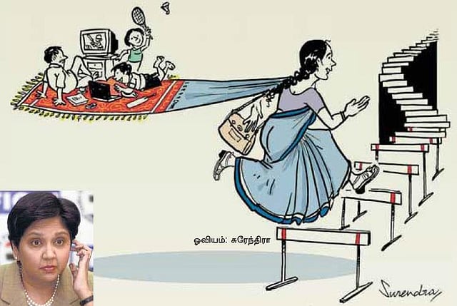 பெப்சிகோ தலைமைப் பொறுப்பில் இருக்கும் இந்திரா நூயி, தன் அனுபவத்தை ஒரு பேட்டியில் பகிர்ந்துகொண்டிருக்கிறார். அது பெண்களின் நிலை பற்றிய பல கேள்விகளை எழுப்புகிறது.