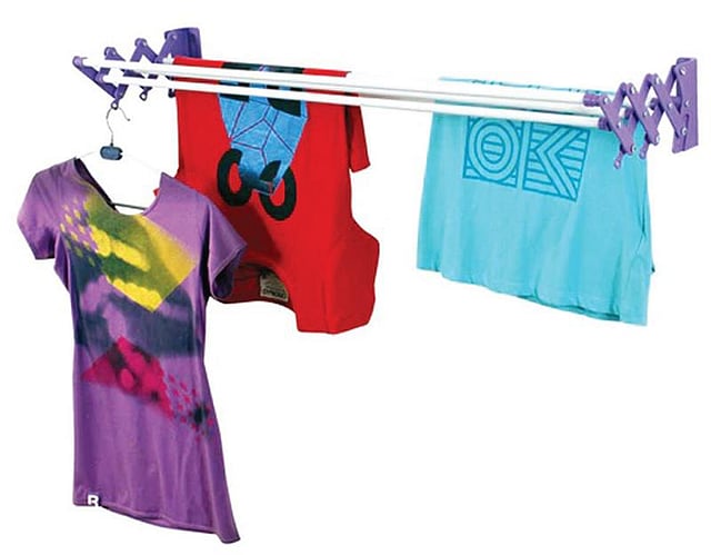 பால்கனி சுவரில் பொருத்திக் கொள்ளலாம். துணி காயப்போடாத சமயத்தில் இதை மடக்கிவைத்துக் கொள்ளலாம். அதனால் இட நெருக்கடி இல்லாமல் இருக்கும். இது ரூ.1,000லிருந்து கிடைக்கிறது.