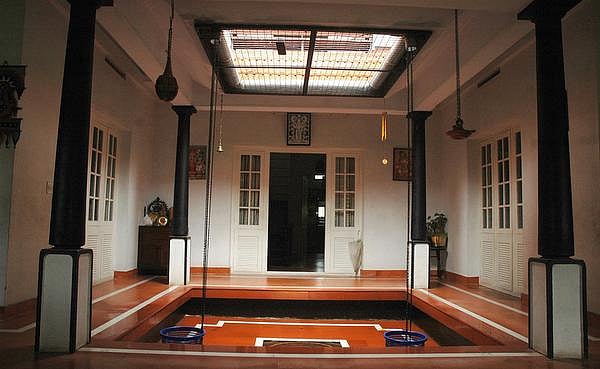 நடுமுற்றத்திலும் வேலைப்பாடுகள் கொண்ட நான்கு மரத் தூண்களால் அழகாக வடிவமைக்கப்பட்டிருக்கும். நடுவில் துளசி மாடம் இருக்கும். வீட்டின் உள்கட்டமைப்பு பாரம்பரியம் மாறாமல் பிரம்மாண்டமாய் அமைந்திருப்பது வியக்கச்செய்கிறது. எல்லோரும் கூட்டுக் குடும்பங்களாக வாழ்வதற்கே இந்தக் கட்டமைப்பில் வீடுகள் கட்டப்பட்டன.
