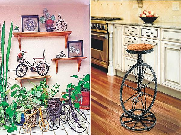 சைக்கிள் சக்கரங்கள் போன்ற பெரிய பொருட்களை வைத்து வடிவமைக்க விருப்பமில்லாதவர்கள், சின்ன சின்ன பொருட்களை வைத்து வடிவமைக்கலாம். உதாரணமாக, சைக்கிள் வடிவமைப்பில் இருக்கும் மேசை கடிகாரத்தை வாங்கலாம். இந்த ‘சைக்கிள்’ கடிகாரங்கள் ஆன்லைன் ஸ்டோர்களிலேயே கிடைக்கின்றன.