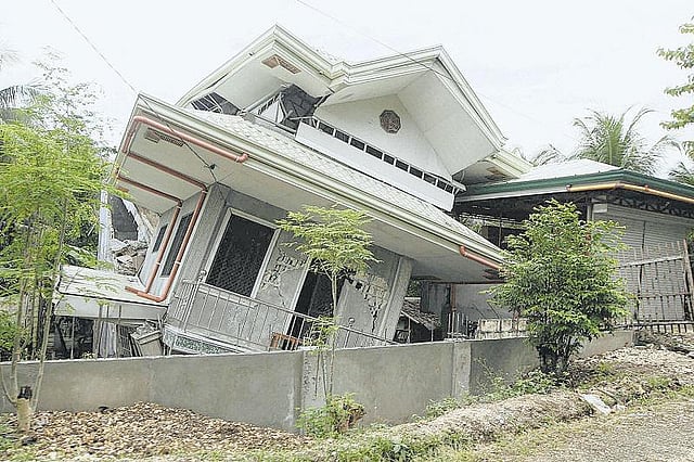 பூகம்பங்களின் போது கட்டிடங்கள் பக்கவாட்டு அதிர்வுகளால் அதிகம் பாதிக்கப்பட்டுக் கட்டிடத்தின் பக்கங்கள் குவியலாகச் சரிகின்றன.