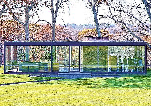 அமெரிக்காவின் முன்னணிக் கட்டிடக் கலைஞர்களின் ஒருவரான பிலிப் ஜான்ஸன் அதைச் சாத்தியப்படுத்தியிருக்கிறார். 1949-ம் ஆண்டு அவர் தனது சொந்த உபயோகத்துக்காகக் கட்டியுள்ளார். இரும்பையும் கண்ணாடியையும் கொண்டு இந்த வீட்டை அவர் உருவாக்கியுள்ளார்.