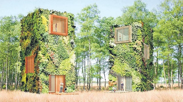 நல்ல வீடு எப்படி இருக்க வேண்டும்? அதன் இலக்கணம் என்ன? இயற்கை வெளிச்சமும் சுத்தமான காற்றும் கிடைத்தால் போதும் அதுவே நல்ல வீடு என்கிறீர்களா? மேலே மின்சார ஒயர்கள் செல்லாத, சுவர்களைச் சுற்றி பச்சைப் பசேலென்ற இலைகள் மூடிய, முழுவதும் மரம் போன்றே தோற்றம் தரக்கூடிய வீடு எப்படி இருக்கும்? கிட்டத்தட்ட காட்டில் இருப்பது போன்ற ஒரு வீடு நகரத்துக்குள் கிடைத்தால் கேட்கவா வேண்டும்? ஆனால் இதெல்லாம் நடக்கவா போகிறது, எதற்குத் தேவையில்லாமல் கற்பனையை வளர்க்க வேண்டும் என்று தோன்றுகிறதா? ஆனால் எதிர்காலத்தில் இப்படியான வீடுகள் அதிகம் இருக்கத்தான் போகிறது என்கிறார் ஒரு கட்டிட வடிவமைப்பாளர். நெதர்லாந்தைச் சேர்ந்த ரைமாண்ட் டே ஹுல்லு என்னும் வடிவமைப்பாளர் இத்தகைய வீடுகளை உருவாக்கும் முயற்சியில் இறங்கியுள்ளார்.