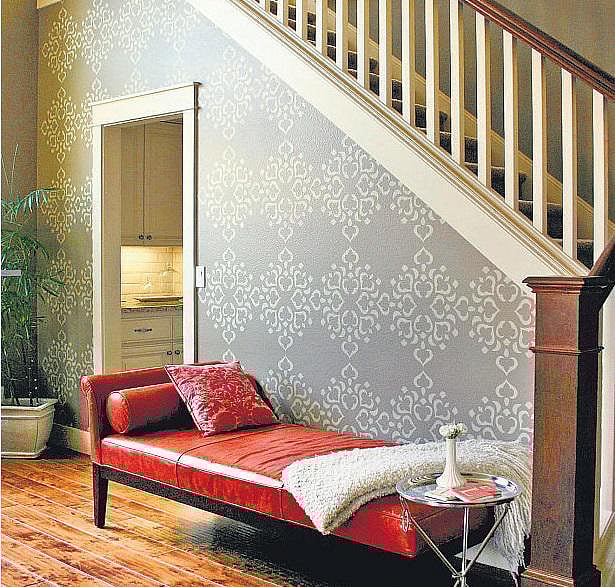 உங்கள் வீட்டில் வளைவான படிக்கட்டுகள் இருந்தால் அதற்குக் கீழிருக்கும் சுவரில் கலைநயமிக்க வால்பேப்பரை ஒட்டிவைக்கலாம். இந்த சுவரில் படங்களை மாட்டிவைத்தாலும் அது அவ்வளவாகக் கவனத்தை ஈர்க்காது. அதனால், வால்பேப்பர் ஒட்டுவது சிறந்த தேர்வாக இருக்கும்.