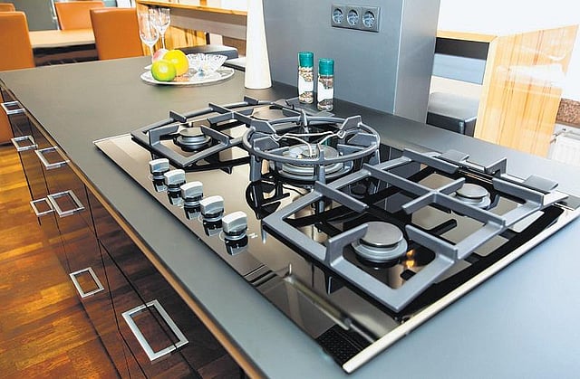 சமையலறையின் மேடை மிகவும் வசீகரமாக அமைக்கப்படுகிறது. மேடையிலேயே சமையல் எரிவாயு அடுப்பானது பதிக்கப்படுகிறது. மேடையில் மீது துறுத்திக்கொண்டு அடுப்பு அமையாமல் அடக்க ஒடுக்கமாக, பார்வைக்குப் பாந்தமாக அது அமைந்துவிடுகிறது. அதன் மீது அமைக்கப்படும் நவீன புகைபோக்கி புகையைச் சமையலறையிலிருந்து நாசூக்காக அப்புறப்படுத்திவிடுகிறது. நவீன புகைபோக்கி, அடுப்புக்கு மேலேயே அமைக்கப்படுவதால் சமையலின்போது ஆவியாகும் எண்ணெய்ப் புகையும், சப்பாத்தி போன்ற உணவைத் தயாரிக்கும்போது ஏற்படும் புகையும் அப்படியே மேலுக்குச் சென்று வீட்டுக்கு வெளியே அனுப்பப்பட்டுவிடுகிறது. இதனால் சமையலறையில் புழங்குவோர் கண் எரிச்சலின்றி, தும்மலின்றி நிம்மதியாக வேலை செய்ய முடியும்.