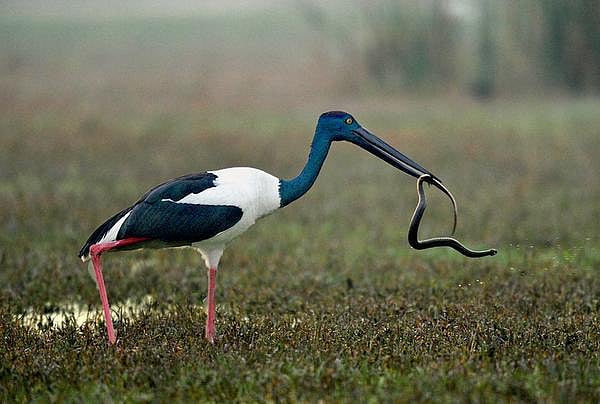 ல்லிக்கு அருகில் உள்ள சுல்தான்பூர் தேசியப் பூங்காவுக்கு ஒருமுறை சென்றிருந்தேன். பஸய் சதுப்புநிலம் என்று ஒரு பகுதி அங்கே இருக்கிறது. அங்கே நாரைகளைப் படம் எடுப்பதற்காகக் காலையில் சென்றிருந்தேன். ஒரே பனிமூட்டம். அந்தப் பனிமூட்டத்துக்கு இடையே கருங்கழுத்து நாரை (பிளாக் நெக்ட் ஸ்டார்க்) ஒன்று, தண்ணீர்ப் பாம்பு ஒன்றைப் பிடித்து, அதைச் சுழற்றிப் பார்த்துவிட்டு சாப்பிட்டது. ஆம்… உயிருடன்தான்! பாம்பின் வாலை நாரை பிடித்திருக்க, அதனிடமிருந்து பாம்பு தப்பிக்க முயன்றது. ஆனால் முடியவில்லை. அந்த நேரத்தில் அதைப் படமெடுத்தேன்.