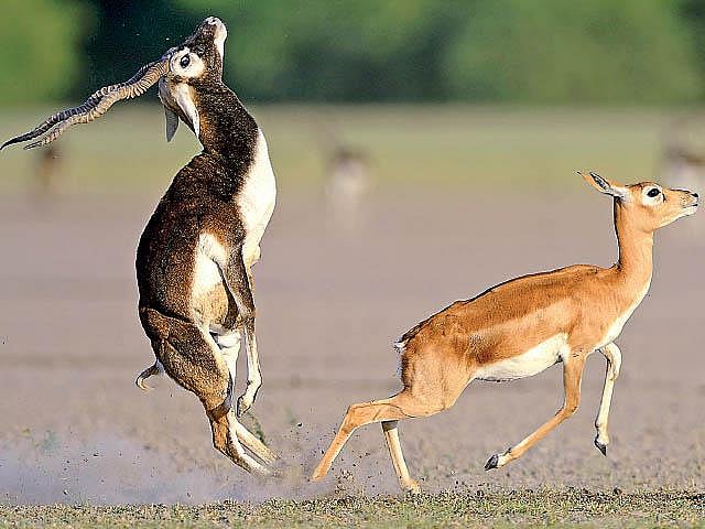 2011-ல் முதன்முதலாக தால் சப்பரில்தான் படமெடுத்தேன். ஒரே நேரத்தில் நூற்றுக்கணக்கான வெளிமான்களை அப்போது பார்க்க முடிந்தது. பொதுவாக ஆண் வெளிமான்கள் தனிக்கூட்டமாகவும், பெண் வெளிமான்கள் தனிக்கூட்டமாகவும் சுற்றித் திரியும். மாலை நேரம் அது. அப்போது ஒரே ஒரு ஆண் வெளிமான், ஒரே ஒரு பெண் வெளிமானைத் துரத்திக் கொண்டிருந்தது. இணை சேர்வதற்கான விளையாட்டுதான் அது. அப்போது எடுத்த படம் இது.