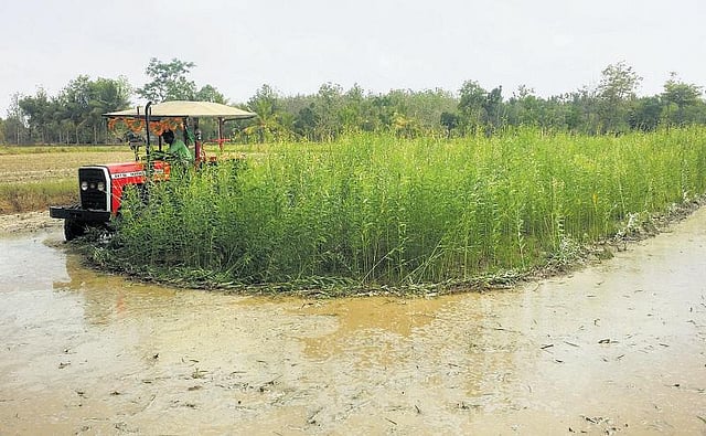 “சனப்பு எனப்படும் தழைச்சத்துத் தாவரம், வயலில் நெல் உள்ளிட்ட பயிர்களுக்கு ஏற்ற உரமாகும். இதில் நுண்ணூட்ட சத்துகள் அதிகம் அடங்கியுள்ளன. பசுந்தாள் உரமான சனப்புத் தாவர விதையை ஒவ்வொரு வயலிலும் தெளித்துச் சிறிது தண்ணீர் விட்டால்போதும். குறைந்தபட்சம் இரண்டரை அடி முதல் நான்கு அடிவரை வளரும். இந்தச் செடிகளை வளர்த்து 45 நாட்கள் கழித்துத் தண்ணீர் விட்டு மக்கிப் போகும் அளவுக்கு உழவு செய்ய வேண்டும்.