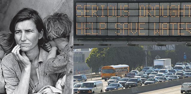 2,000-வது ஆண்டு தொடங்கியதிலிருந்தே வறட்சி ஆரம்பித்துவிட்டது. கலிபோர்னியாவில் நாலாவது ஆண்டாக வறட்சி தொடர்கிறது. இப்போது 6.4 கோடி பேர் பாதிக்கப்பட்டுள்ளனர். கால்நடை மந்தைகளைப் பராமரிக்க முடியாமல் விவசாயிகள் விற்றுவிட்டார்கள். பயிரிட முடியாத விவசாயிகள் தரிசாகவிட்டுச் சென்றிருக்கிறார்கள். நகரங்களில் தண்ணீருக்கு ரேஷன் வந்துவிட்டது. எதிர்காலத்தில் இந்த வறட்சி தொடரும் என்பதால் மக்கள், விலங்குகள், தாவரங்கள் என்று எல்லா தரப்புக்கும் வேதனை மோசமாகத்தான் இருக்கப் போகிறது.