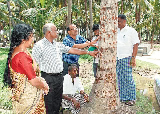 தென்னையில் தற்போது புதிதாகப் பரவிவரும் வாடல் நோயைக் கட்டுப்படுத்தும் முறைகளை வேளாண் அதிகாரிகள் விளக்கியுள்ளனர்.
