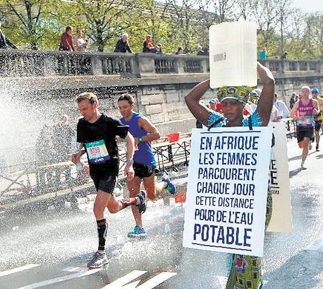சமீபத்தில் பாரிஸில் ஒரு மாரத்தான் ஓட்டம் நடைபெற்றது. 54 ஆயிரம் பேர் கலந்துகொண்ட இந்தப் போட்டியில் வெற்றி பெற்றவரைவிட, அதில் கலந்துகொண்ட ஒருவர் உலகின் கவனத்தை ஈர்த்திருக் கிறார். காரணம், எல்லோரும் சும்மா ஓடும்போது, இவர் மட்டும் தலையில் 20 லிட்டர் தண்ணீரைச் சுமந்துகொண்டு ஓடியதுதான்.