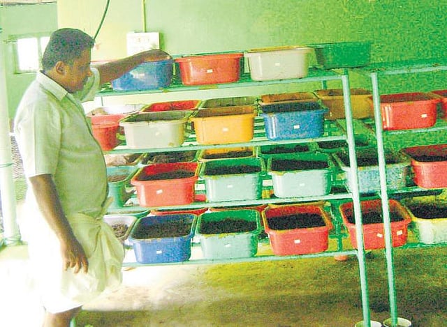 நமது மண்ணில் உள்ள தோட்டப் புழுக்கள், சாணப்புழுக்களைப் போலக் கழிவை உண்பதில்லை. எனவே, மட்கு தயாரிக்கும் தொழிற்சாலைகளைப் போல, தோட்டப் புழுக்களைக் கொண்ட பல பண்ணைகள் உருவாகிவிட்டன. அதில் ஒன்றுதான் சத்தியமங்கலம் அருகேயுள்ள உப்புப்பள்ளம் ரவியின் பண்ணை.