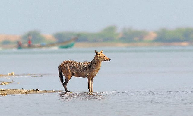 காட்டின் துப்புரவாளரான இந்திய நரி (Golden Jackal) நாங்கள் இருந்த கரையை நோக்கி வர ஆரம்பித்தது. ஏரியில் நீந்திச் சென்று மீன் வேட்டையாடியது. காயல் பகுதியில் இந்திய நரியைப் பார்ப்பதே கஷ்டம், அதிலும் அது வேட்டையாடுவதைப் பார்க்கும் அரிய அனுபவம் எங்களுக்குக் கிடைத்தது.
