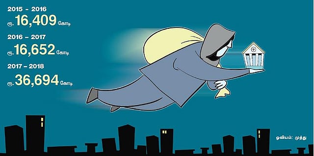 கடந்த நிதி ஆண்டில் மட்டும் ரூ. 30 ஆயிரம் கோடி அளவுக்கு மோசடிகள் வங்கிகளில் அரங்கேறியுள்ளன. மோசடிகளின் எண்ணிக்கை மட்டுமே 6,500. இதில் நீரவ் மோடி, மெகுல் சோக்சி கூட்டணி நிகழ்த்திய மோசடி ரூ. 12 ஆயிரம் கோடி.