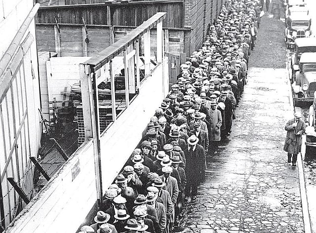 பங்குச்சந்தை சரிந்ததால், பணக்காரர் களுக்கு பணம் மட்டுமே இழப்பு, ஆனால் தொழிலாளர்கள் வேலையை இழந்தனர். வேலையில்லாத் திண்டாட்டம் கடுமையாக அதிகரித்தது. ஒரு கட்டத்தில் வேலை இல்லாதவர்களின் எண்ணிக்கை 25 சதவீதமாக இருந்தது. கிட்டத்தட்ட 1.5 கோடி மக்கள் வேலை இல்லாமல் தவித்தார்கள்.
