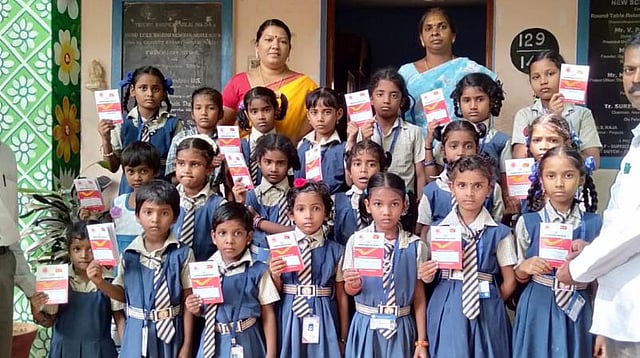 மத்திய அரசின் செல்வமகள் சேமிப்பு திட்டத்தில், தங்கள் பள்ளியில் படிக்கும் மாணவிகளுக்கு முதல் தவணைத்தொகையை செலுத்தி சேமிப்பு கணக்கை ஆசிரியர்கள் தொடங்கியுள்ளனர்.