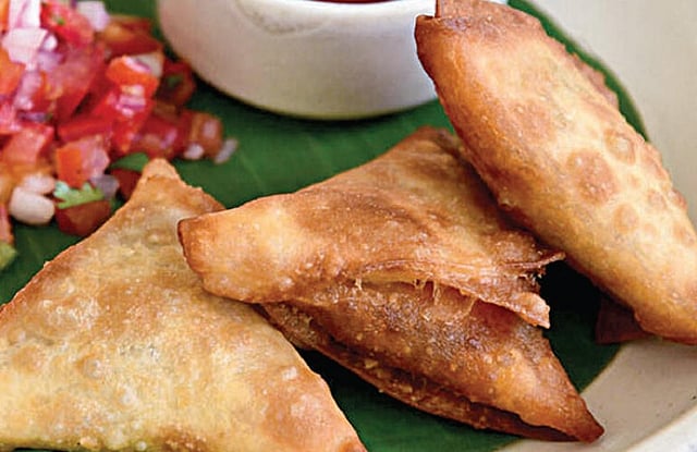 இந்தியாவில் வெங்காயம், பட்டாணி, உருளைக்கிழங்கு, பன்னீர், மசாலா அல்லது இறைச்சியின் கலவை நிரப்பப்பட்ட முக்கோண அல்லது கூம்பு வடிவத்தில் மடித்துத் தயாரிக்கப்படுகிறது.
