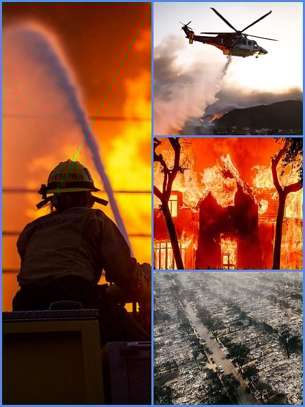 லாஸ் ஏஞ்சல்ஸ் காட்டுத் தீ தொடர்பாக பகிரப்படும் வீடியோக்கள், புகைப்படங்கள் உலகம் முழுவதும் பெரும் அதிர்வலைகளை ஏற்படுத்தி வருகின்றன.