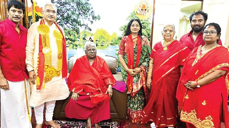 பின்னர் ஆதிபராசக்தி சித்தர் பீடத்துக்கு ஆன்மிக குரு பங்காரு அடிகளாரை தங்க ரதத்தில் விழுப்புரம், கடலூர் மாவட்டசெவ்வாடை பக்தர்கள் ஊர்வலமாக அழைத்து வந்தனர். அவரைபிரதமர் மோடியின் சகோதரர் பங்கஜ் தாமோதர் தாஸ் மோடி சந்தித்து ஆசி பெற்று, ஆதிபராசக்தி அம்மனை வழிபட்டார்.